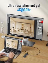 - 4K HD Dual Display Supports dual HDMI output with mirror/extend mode on MacBook and Windows laptops. Delivers crisp 4K@30Hz resolution—excellent for video calls, movies, presentations, and multi-screen workflows.