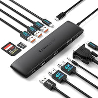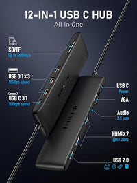 - 12-in-1 USB C HUB: Portable and lightweight docking station with 12 essential ports: 2 × HDMI (4K@30Hz), 1 × VGA, 3.5mm audio, 100W PD, SD, TF, 1 × USB-A 2.0, 3 × USB-A 3.2, 1 × USB-C 3.2.