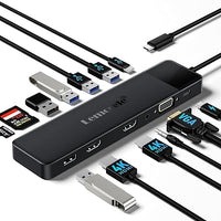 13-in-1 USB-C Docking Station: Converts one USB-C/Thunderbolt 3 port into 13 ports: 2× 4K 60Hz HDMI, 3× USB 3.0, 2× USB 2.0, VGA, SD/TF, USB-C 3.0 data, 100W PD, and 3.5mm audio.