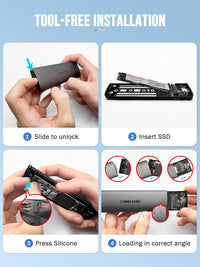 Note: Reverse connection may cause overheating. - Easy Tool-Free Installation: Install NVMe SSD using silicone fasteners—no screws required. Plug & play for Windows, macOS, Linux, ChromeOS. Includes S.M.A.R.T. monitoring support.