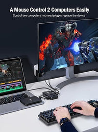 - One-click switching No need to frequently plug and unplug cables or set up complicated network sharing software, you can switch back and forth between 2 computers in a second with just click of a button, and the LED light shows the computer that is being activated.