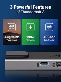 - Excellent 4K@60Hz HDMI + Thunderbolt 3 HDMI supports UHD 4K@60Hz for crystal-clear visuals. Thunderbolt 3 supports 40Gbps transfer, 100W PD charging, and 4K display for smooth streaming, gaming, and professional work.