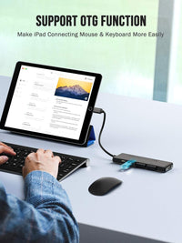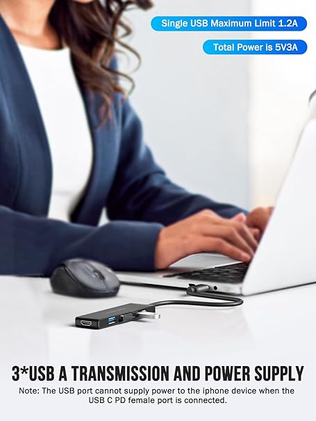 - USB-A Split Hub 1 × USB 3.0 (5Gbps), 2 × USB 2.0 ports for mouse/keyboard/printer. 100W PD charging powers laptops while using all hub functions.