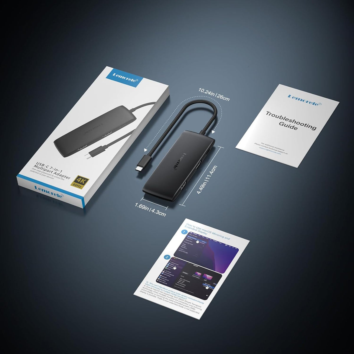 - Permanent After-sales Service and Product List Lemorele provides 1-year warranty, unconditional return, and 24×7 support. Product list: 1×USB-C Hub, 1×User Manual, 1×Troubleshooting Report.