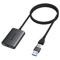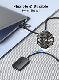 ⚠ Do NOT use USB hubs — they may cause recognition failure or unstable performance. - Durable Braided Cable + Broad Compatibility: Built with a 60 cm nylon-braided cable for enhanced durability and flexibility. Compatible with HP, Dell, MacBook, and other mainstream laptops. The dual-interface design overcomes port limitations, enabling seamless multi-screen productivity.